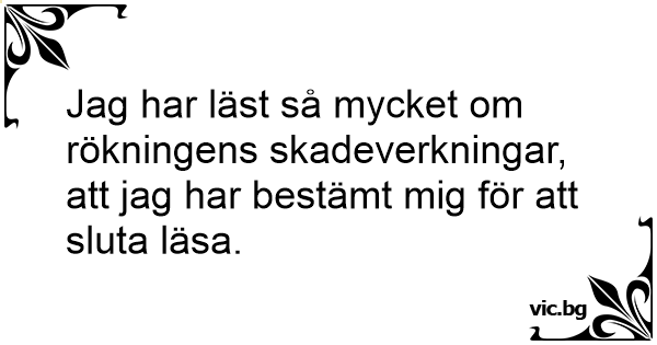 Jag har läst så mycket om rökningens skadeverkningar, att jag har bestämt mig för att sluta läsa.