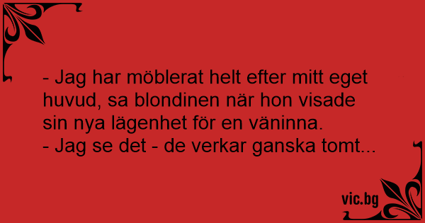 - Jag har möblerat helt efter mitt eget huvud, sa blondinen när hon visade sin nya lägenhet för en väninna.