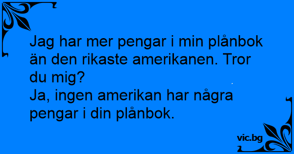 Jag har mer pengar i min plånbok än den rikaste amerikanen. Tror du mig?