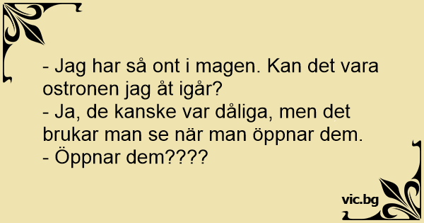 - Jag har så ont i magen. Kan det vara ostronen jag åt igår?