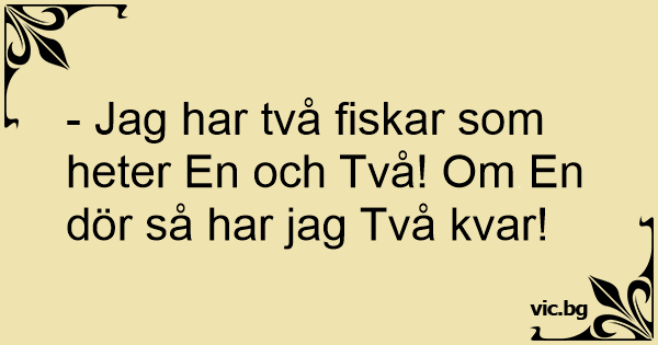 - Jag har två fiskar som heter En och Två! Om En dör så har jag Två kvar!