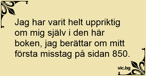 Jag har varit helt uppriktig om mig själv i den här boken, jag berättar om mitt första misstag på sidan 850.