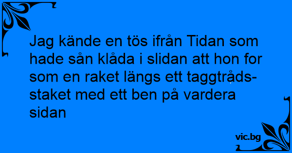 Jag kände en tös ifrån Tidan som hade sån klåda i slidan att hon for som en raket längs ett taggtråds-staket med ett ben på vardera sidan