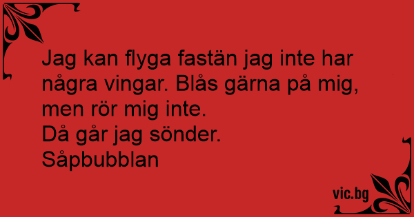 Jag kan flyga fastän jag inte har några vingar. Blås gärna på mig, men rör mig inte.
