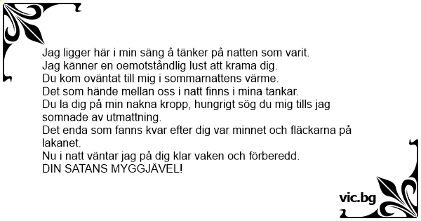 Du la dig på min nakna kropp, hungrigt sög du mig tills jag somnade av utmattning.