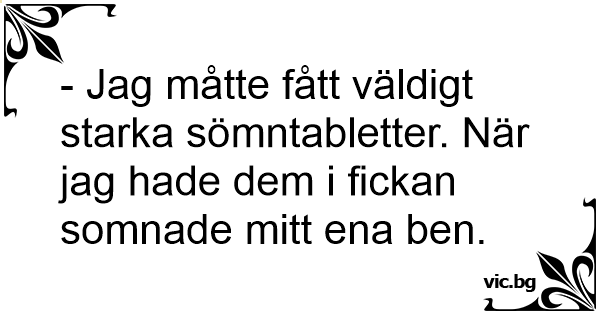 - Jag måtte fått väldigt starka sömntabletter. När jag hade dem i fickan somnade mitt ena ben.