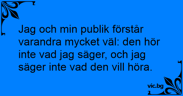 Jag och min publik förstår varandra mycket väl: den hör inte vad jag säger, och jag säger inte vad den vill höra.