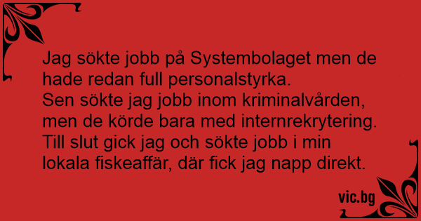Jag sökte jobb på Systembolaget men de hade redan full personalstyrka.