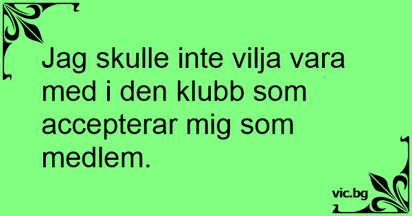 Jag skulle inte vilja vara med i den klubb som accepterar mig som medlem.