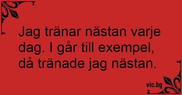 Jag tränar nästan varje dag. I går till exempel, då tränade jag nästan.