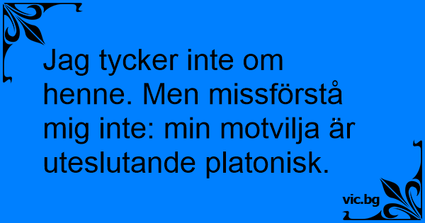 Jag tycker inte om henne. Men missförstå mig inte: min motvilja är uteslutande platonisk.