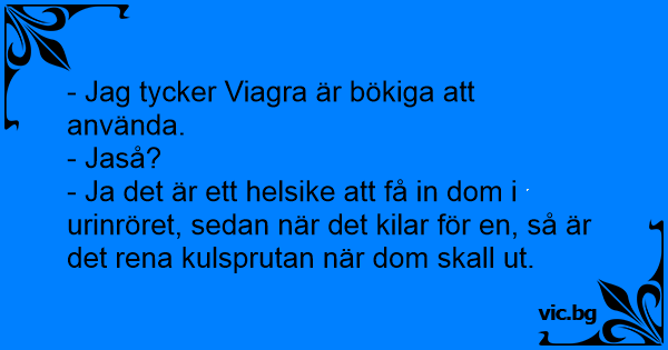 - Jag tycker Viаgrа är bökiga att använda.<br />- Jaså?<br />- Ja det är ett hеlsiке att få in dom i urinröret, sedan när det kilar för en, så är det rena kulsprutan när dom skall ut.
