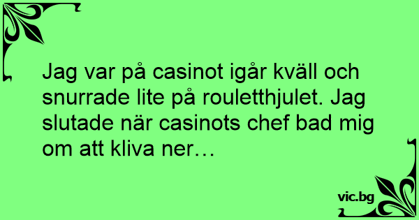 Jag var på casinot igår kväll och snurrade lite på rouletthjulet. Jag slutade när casinots chef bad mig om att kliva ner…