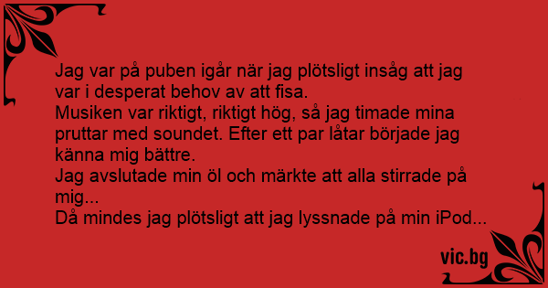 Jag var på puben igår när jag plötsligt insåg att jag var i desperat behov av att fisa.