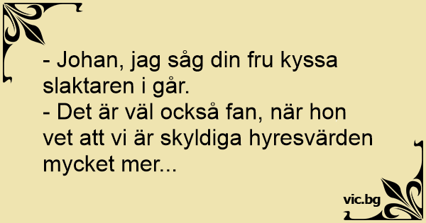 - Johan, jag såg din fru kyssa slaktaren i går.
