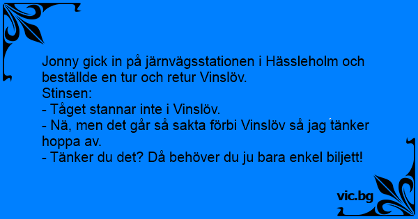Jonny gick in på järnvägsstationen i Hässleholm och beställde en tur och retur Vinslöv.