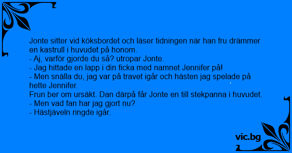 Jonte sitter vid köksbordet och läser tidningen när han fru drämmer en kastrull i huvudet på honom.