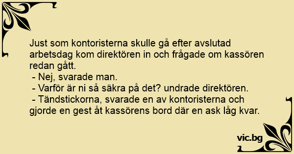 Just som kontoristerna skulle gå efter avslutad arbetsdag kom direktören in och frågade om kassören redan gått.