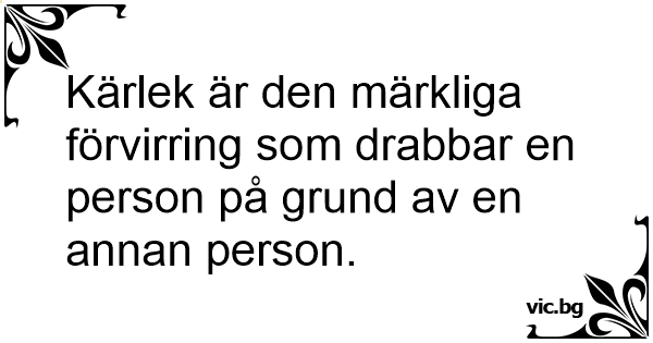 Kärlek är den märkliga förvirring som drabbar en person på grund av en annan person.