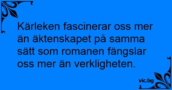 Kärleken fascinerar oss mer än äktenskapet på samma sätt som romanen fängslar oss mer än verkligheten.