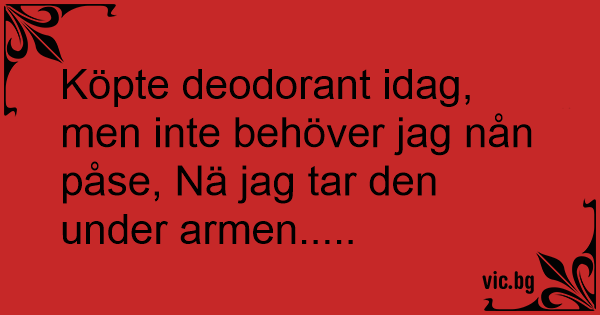 Köpte deodorant idag, men inte behöver jag nån påse, Nä jag tar den under armen.....