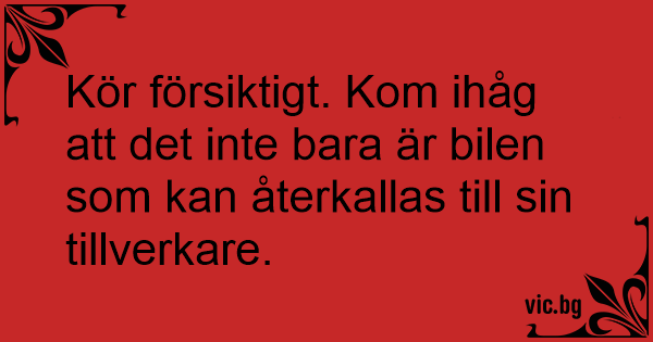 Kör försiktigt. Kom ihåg att det inte bara är bilen som kan återkallas till sin tillverkare.