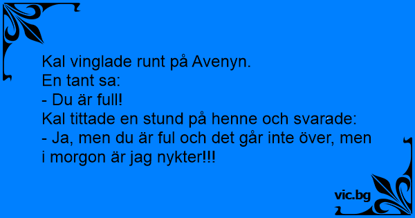 - Ja, men du är ful och det går inte över, men i morgon är jag nykter!!!