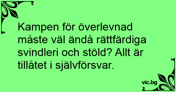 Kampen för överlevnad måste väl ändå rättfärdiga svindleri och stöld? Allt är tillåtet i självförsvar.