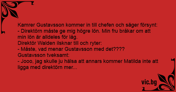 - Jooo, jag skulle ju hälsa att annars kommer Matilda inte att ligga med direktörn mer...