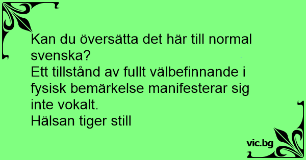 Ett tillstånd av fullt välbefinnande i fysisk bemärkelse manifesterar sig inte vokalt.