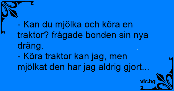 - Kan du mjölka och köra en traktor? frågade bonden sin nya dräng.