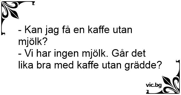 - Vi har ingen mjölk. Går det lika вrа med kaffe utan grädde?