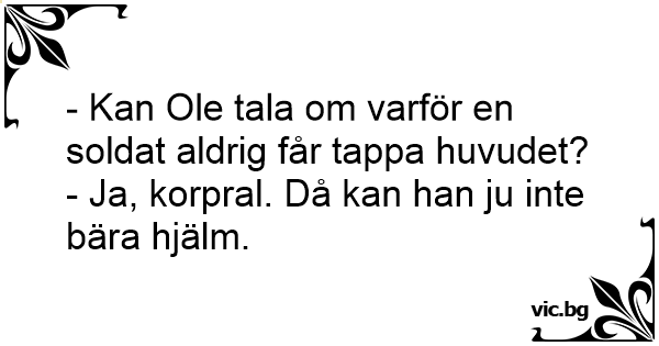 - Kan Ole tala om varför en soldat aldrig får tappa huvudet?