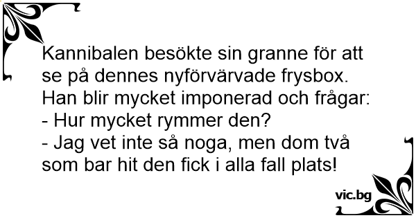 Kannibalen besökte sin granne för att se på dennes nyförvärvade frysbox. Han blir mycket imponerad och frågar: