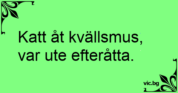 Katt åt kvällsmus, var ute efteråtta.