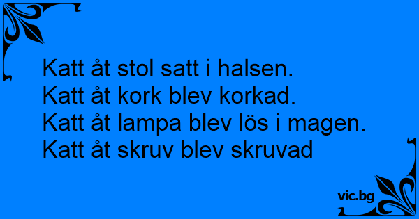 Katt åt kork blev korkad.