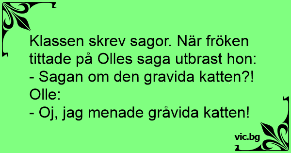 Klassen skrev sagor. När fröken tittade på Olles saga utbrast hon: