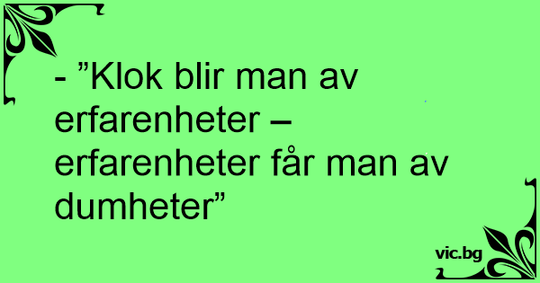 - ”Klok blir man av erfarenheter – erfarenheter får man av dumheter”