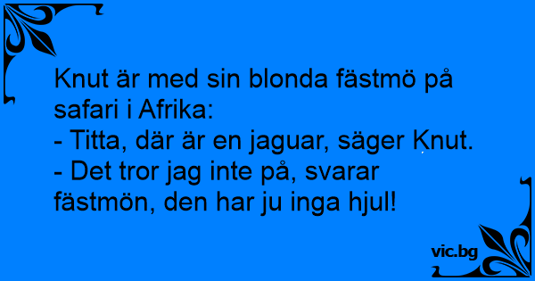 - Det tror jag inte på, svarar fästmön, den har ju inga hjul!