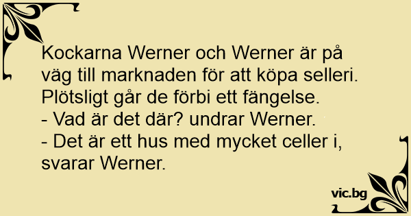 Kockarna Werner och Werner är på väg till marknaden för att köpa selleri. Plötsligt går de förbi ett fängelse.