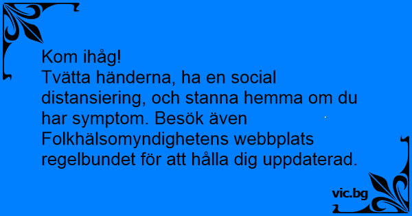 Tvätta händerna, ha en social distansiering, och stanna hemma om du har symptom. Besök även Folkhälsomyndighetens webbplats regelbundet för att hålla dig uppdaterad.