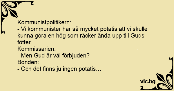 - Vi kommunister har så mycket potatis att vi skulle kunna göra en hög som räcker ända upp till Guds fötter.