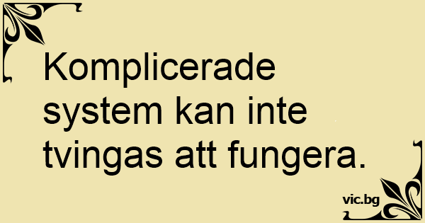Komplicerade system kan inte tvingas att fungera.