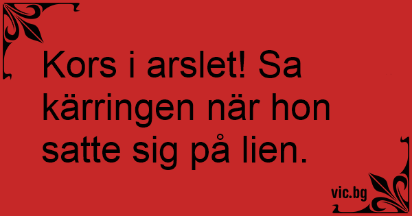 Kors i arslet! Sa kärringen när hon satte sig på lien.