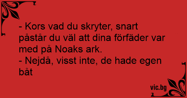- Kors vad du skryter, snart påstår du väl att dina förfäder var med på Noaks ark.