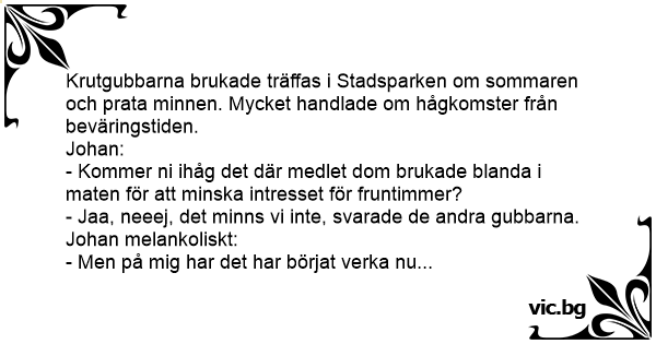- Jaa, neeej, det minns vi inte, svarade de andra gubbarna.