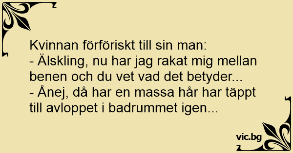 - Älskling, nu har jag rakat mig mellan benen och du vet vad det betyder...