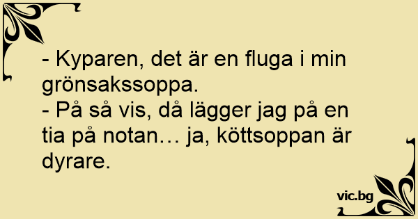 - Kyparen, det är en fluga i min grönsakssoppa.