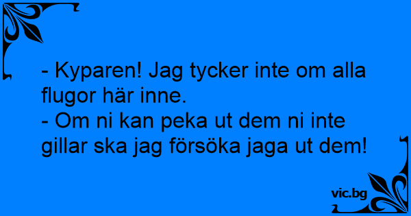 - Kyparen! Jag tycker inte om alla flugor här inne.