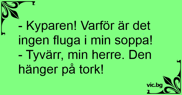 - Kyparen! Varför är det ingen fluga i min soppa!